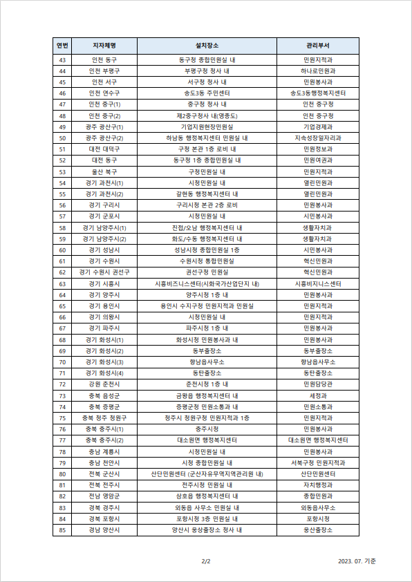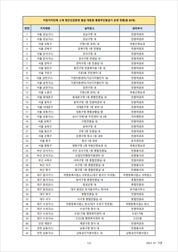 지자체명과 무인발급기의 설치장소 그리고 관리부서 등이 나와있으니 방문전 미리 담당 부서에 전화해서 체크해보시는것도 좋을 것 같습니다.