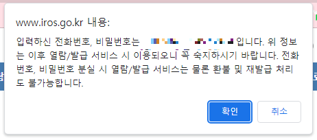 내용 잘 읽어서 숙지하시길 바랍니다. 특히 비밀번호를 분실한 경우 열람/발급이 불가할 수 있으며 환불 및 재발급 처리도 불가능하니 꼭 기억해야 합니다.