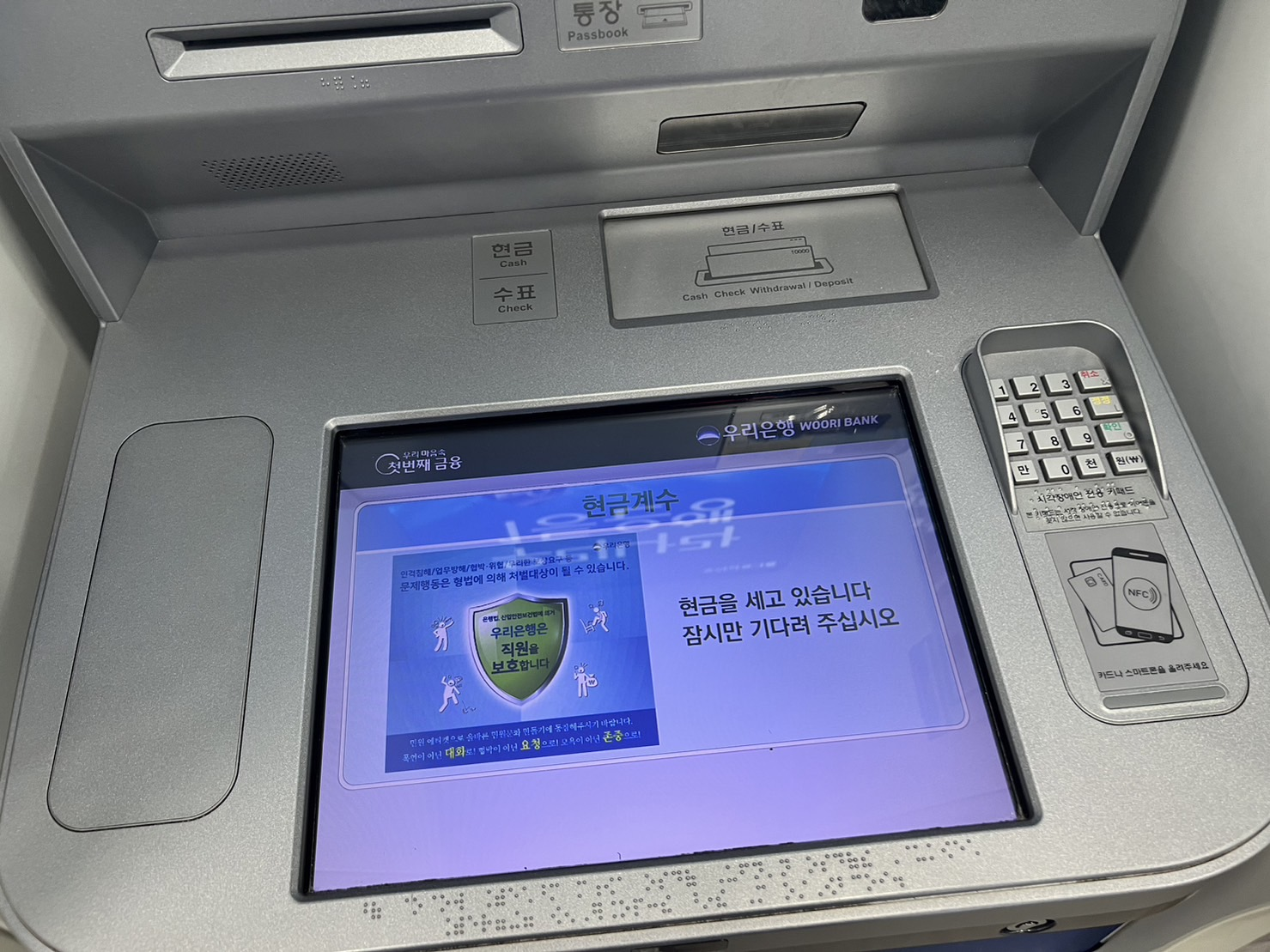 이제 ATM 기기에서 내가 넣은 현금을 셉니다. 꼴랑 만원짜리 한장이라 셀것도 없긴한데요.