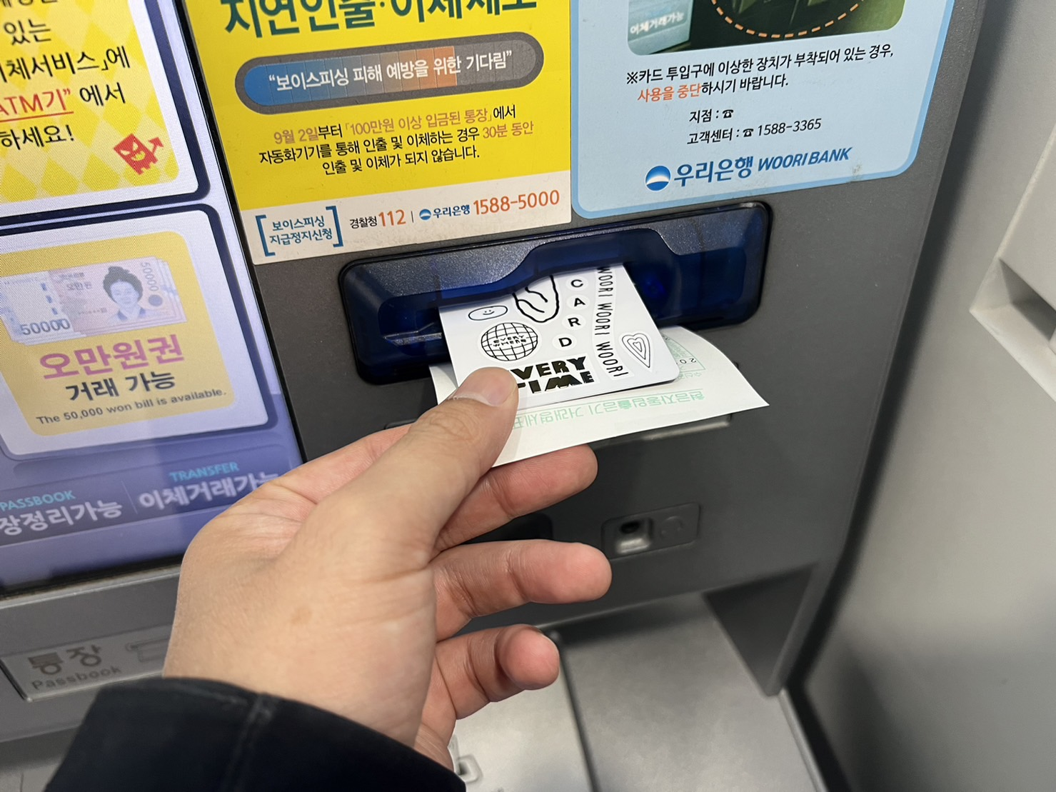 만일 지폐가 여러장이어도 ATM기기가 알아서 잘 세어줍니다.