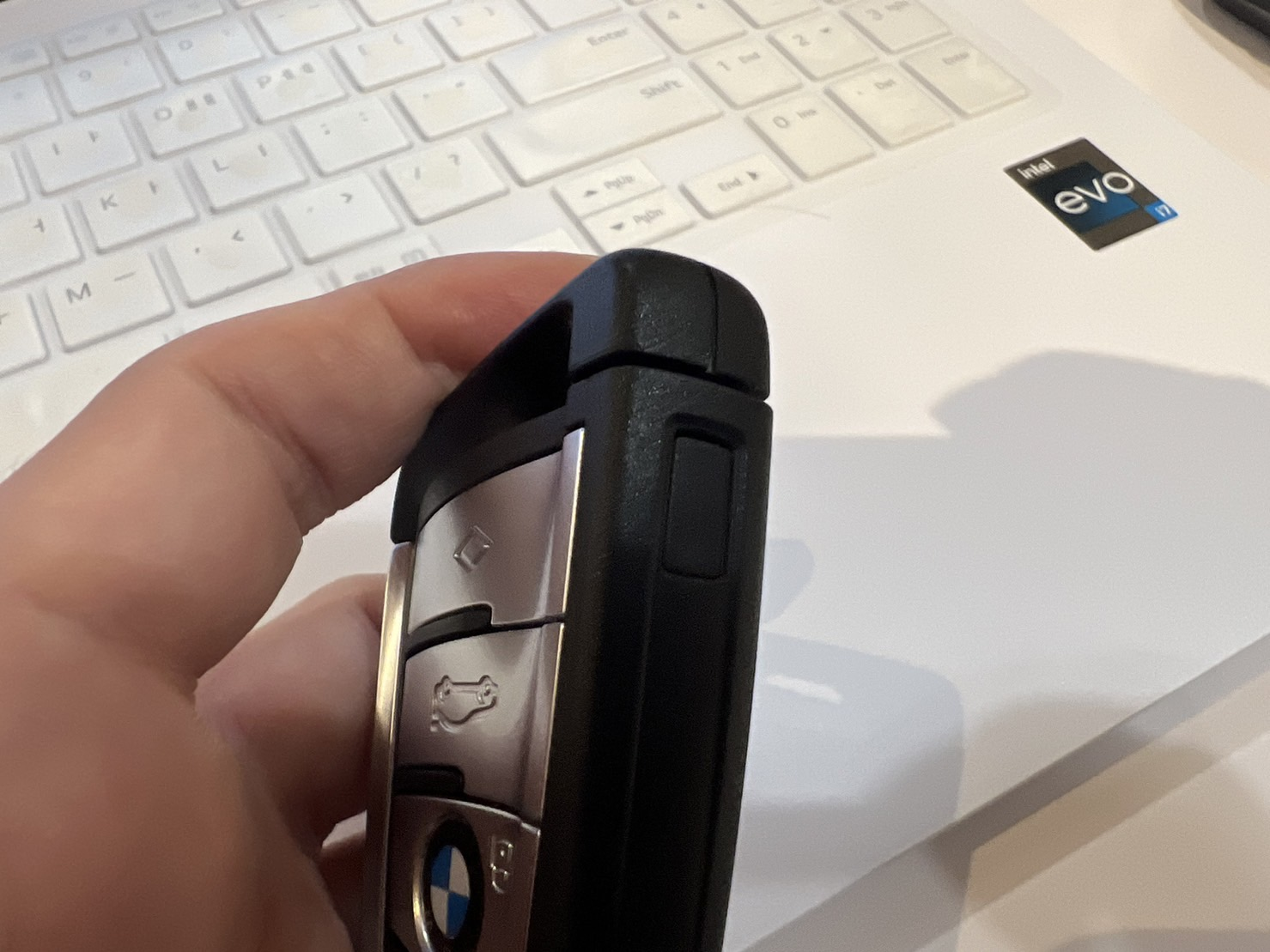 이걸 구멍에 살짝 걸쳐놓고 지렛대 원리를 이용해 스마트키 뒷면을 분리하면 되구요. 굳이 지렛대처럼 하지 않아도 손으로 잘 빼면 잘 분리가 되기도 합니다.
