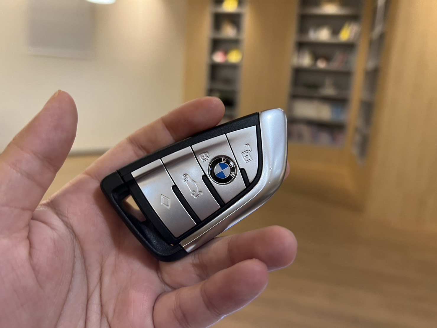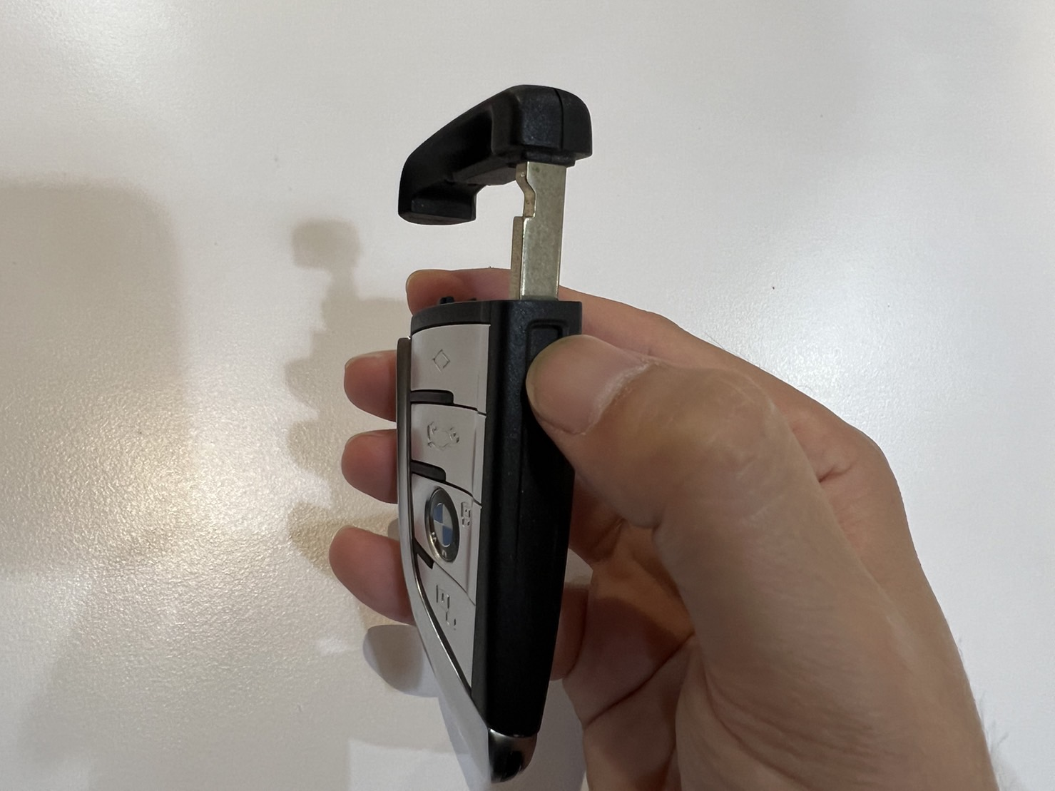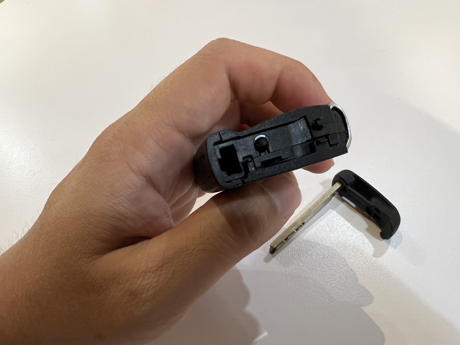 이걸 누른 상태에서 위를 당겨주면 뚜껑 열리듯이 분리가 되고 그 안에 차키가 보입니다.