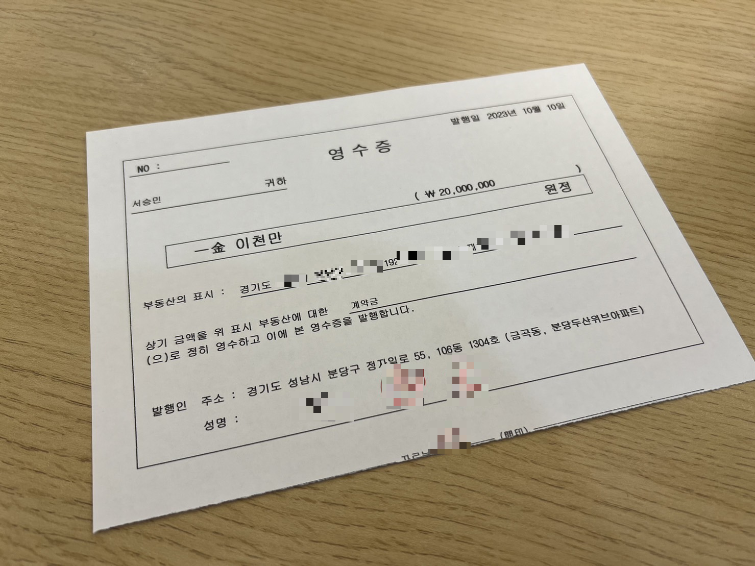부동산에서 계약서를 쓸 때 보통 전체 대금의 10% 정도를 계약금으로 냅니다. 그리고 그 자리에서 계약금을 납부했다는 영수증을 써주는데요. 이 영수증을 잘 챙겨서 은행에 가져가야 합니다. 계약금을 냈다는 인증이니까요.