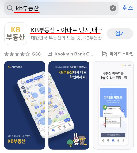 앱이 편하신 분들은 앱스토어나 플레이스토어에서 'KB부동산' 이라고 검색해서 앱을 다운 받아 진행해도 됩니다. 하지만 저 개인적인 생각으로는 굳이 이 앱을 자주 사용할게 아니라면 앱이 아닌 웹에서 접속하는게 나은 것 같습니다.