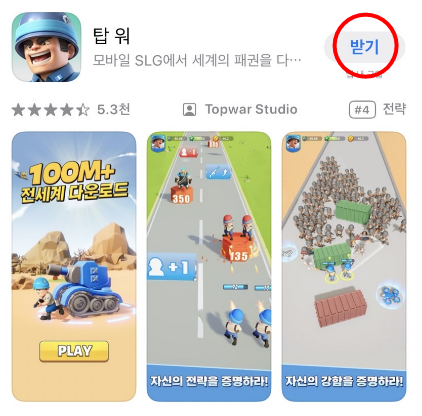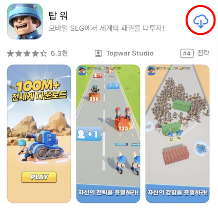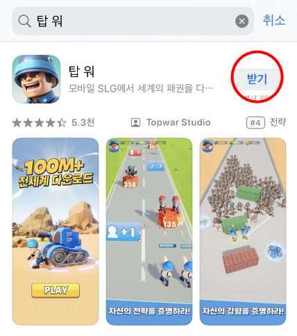 저는 '탑 워' 라는 게임 앱을 삭제했었으니 '탑 워'라고 검색해보겠습니다.