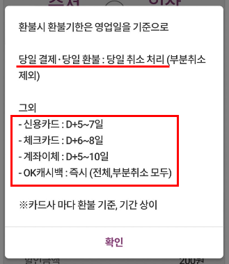 여기서 유념하실 점은 환불시 곧바로 환불금액이 들어오는 것이 아닙니다.
