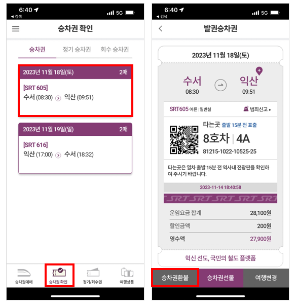 SRT 열차표 예매취소 및 환불하기