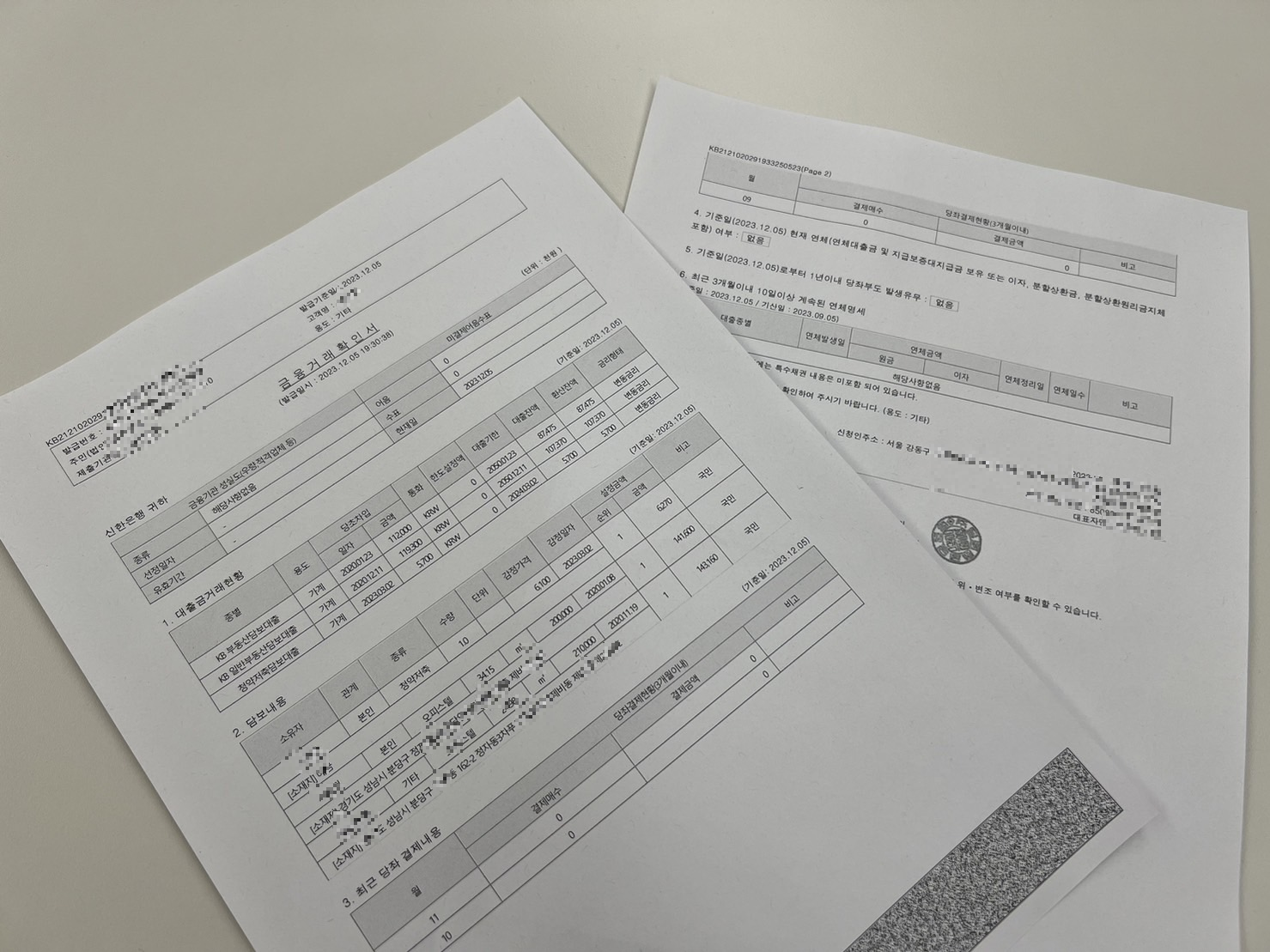 이걸 신한은행에 제출하면 신한은행에서는 국민은행에 있는 제 대출의 상세내역을 참고할 수 있고 이를 기반으로 대출 심사를 할 수 있게 되는 것입니다.