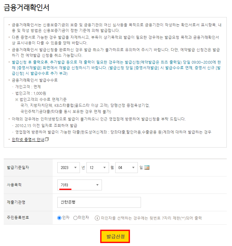금융거래확인서 발급이 필요하신 분들은 참고하시길 바랍니다.