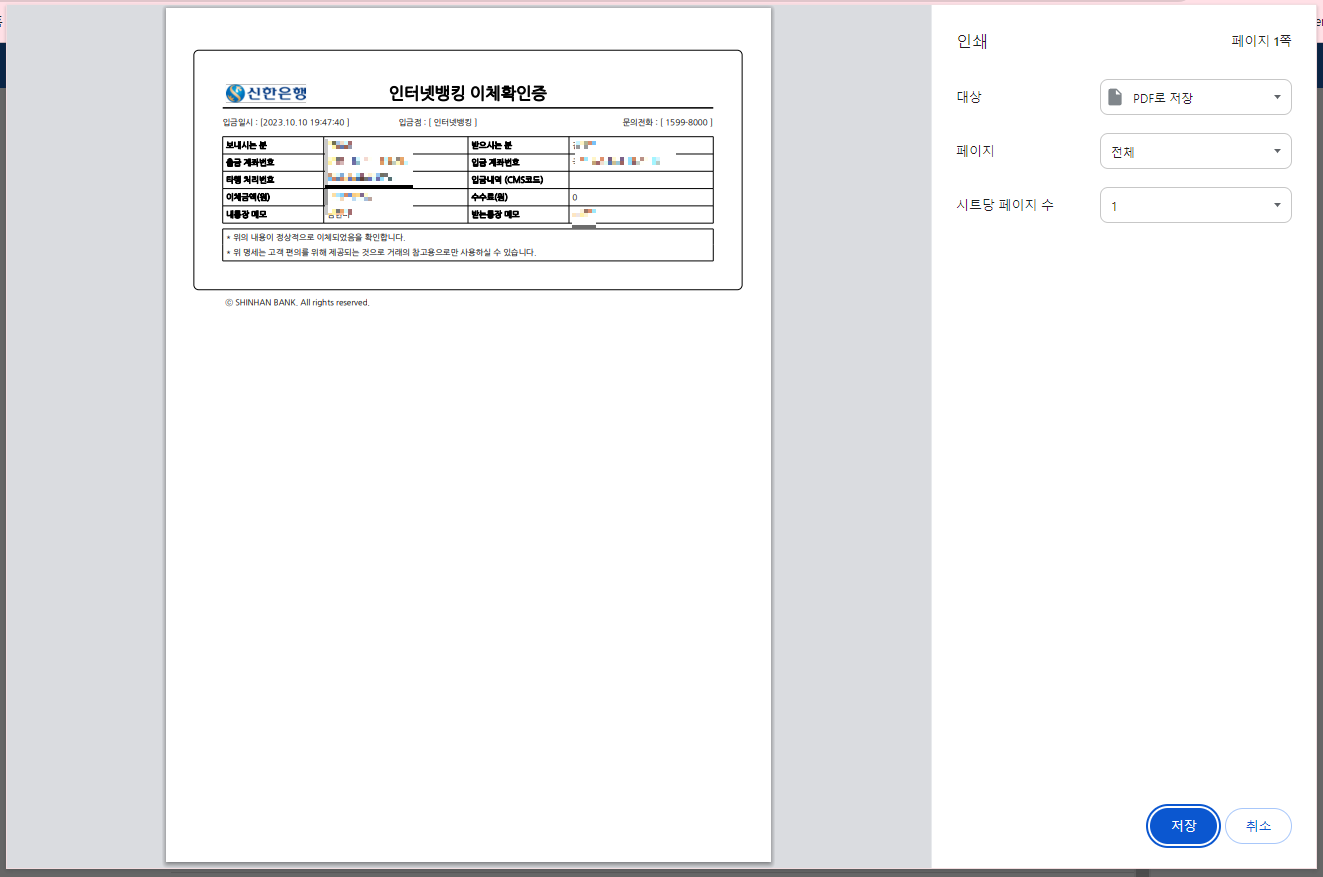이체영수증 출력 및 제출이 필요하신 분들은 참고하시길 바랍니다.