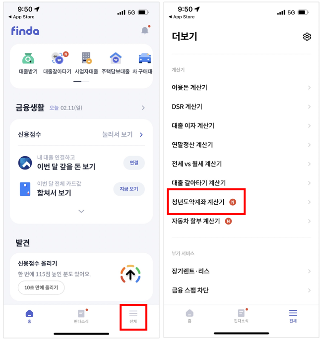 청년도약계좌 가입요건 및 수령액 등은 핀다(Finda) 앱에서 확인할 수 있습니다.