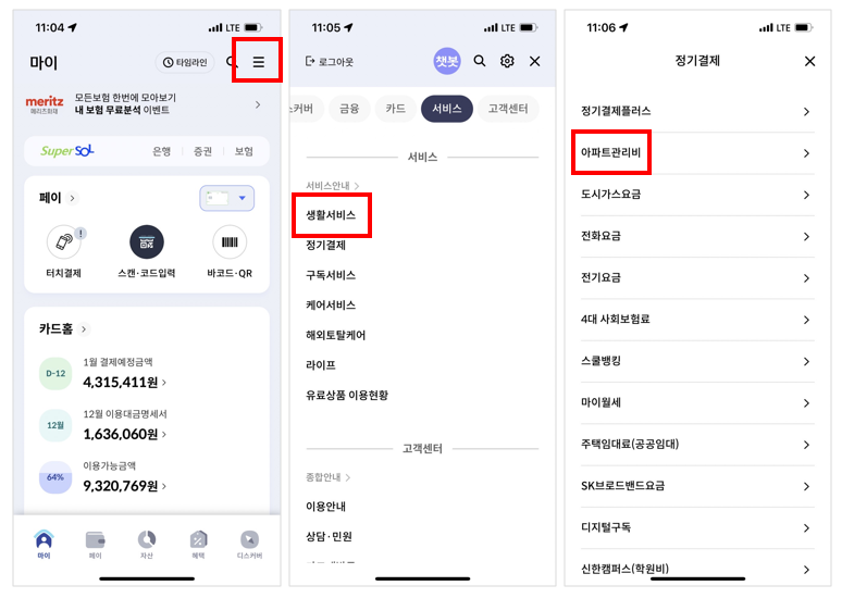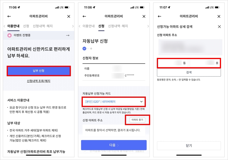 신용카드로 간편하게 아파트 관리비 자동 납부 신청하는 방법 (신한카드 예시)