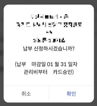 저는 평소 아파트 관리비는 신용카드로 자동 납부되도록 설정했었는데요.