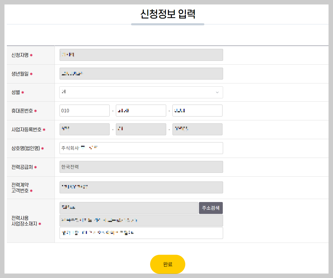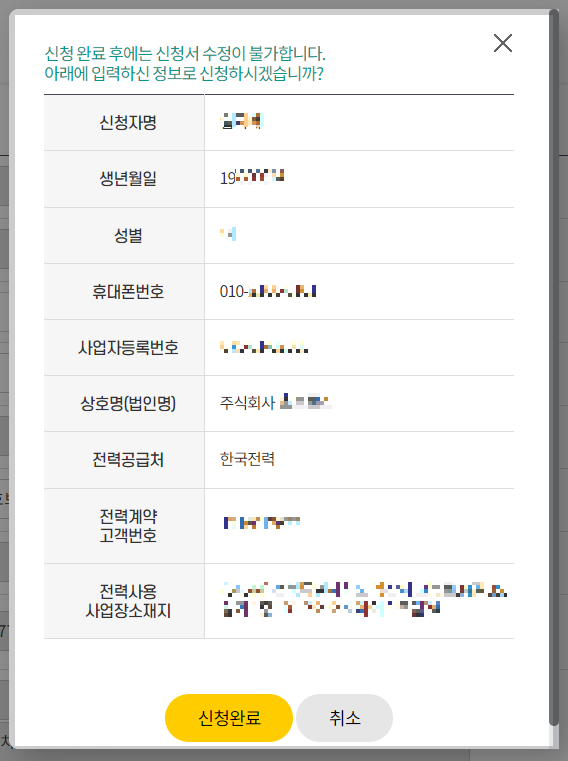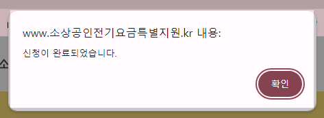 자, 이제 소상공인 전기요금 특별지원 신청이 완료되었습니다.