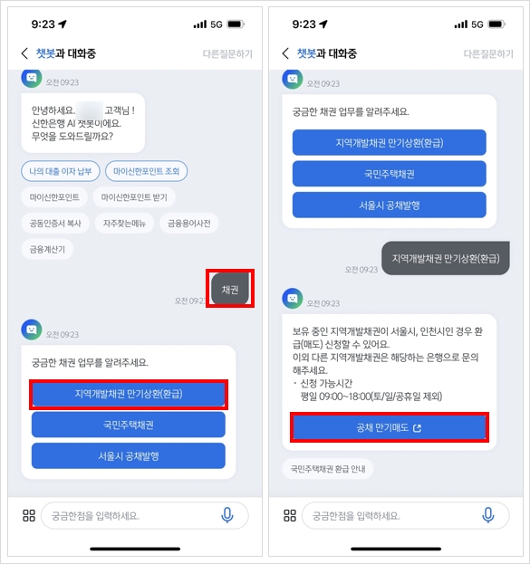 아래 화면처럼 채팅메시지에 "채권"을 입력합니다.
