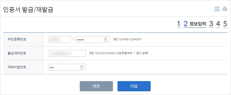 일단 아래 화면처럼 공동인증서 발급/재발급 화면으로 진입합니다.