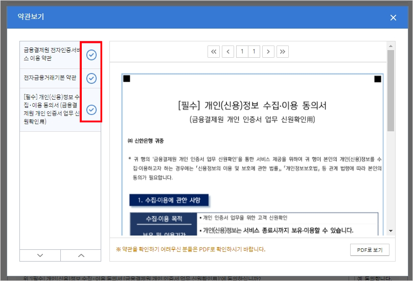 중요한건 각 약관을 굳이 클릭해 확인 체크를 해야한다는 것입니다.