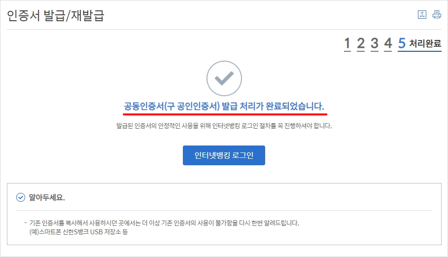 최종적으로 아래 화면처럼 발급 처리가 완료되었다는 페이지가 나오면 정상적으로 완료된 것입니다.