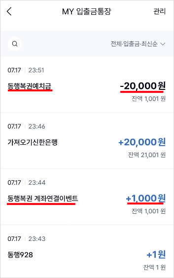 저 같은 경우는 이미 케이뱅크 계좌가 있는 상태라 현금 5천원은 못받았지만 새로 계좌연동을 하면서 현금 1천원은 받을 수 있었습니다.