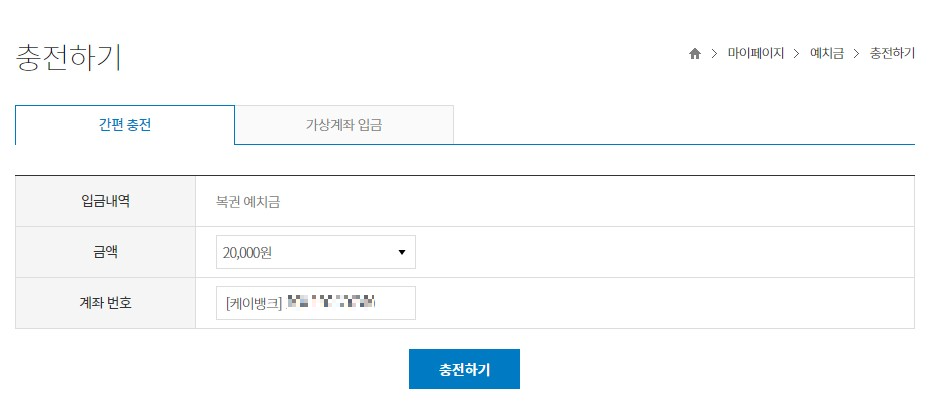 동행복권에서는 케이뱅크와 연계가 되어 간편 충전 기능을 제공하고 있는데요.