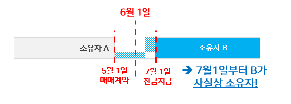 아래 그림처럼 만약 6월1일 전에 매매 계약을 하고, 6월1일 이후에 잔금을 치뤘을 경우입니다.