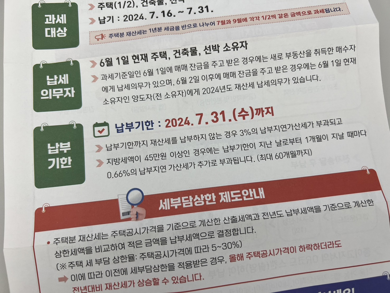 현재 재산세 납부기간인만큼 2024년 재산세 납부기간과 재산세에 대한 기초상식들 몇가지를 살펴보겠습니다.