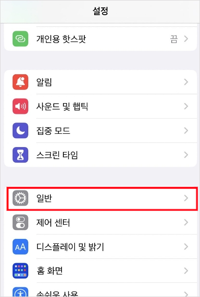 그리고 설정 화면에서 "일반" 메뉴를 눌러서 들어갑니다.