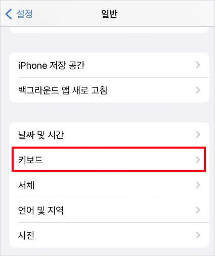 다음 화면에서 스크롤을 조금만 내리면 "키보드"가 보입니다.