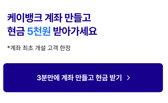 하지만 이 글을 보고 계신 여러분들 중 아직 케이뱅크 계좌가 없는 사람이라면 간단한 노력으로 5천원을 받을 수 있으니 꼭 활용해보시길 바랍니다.