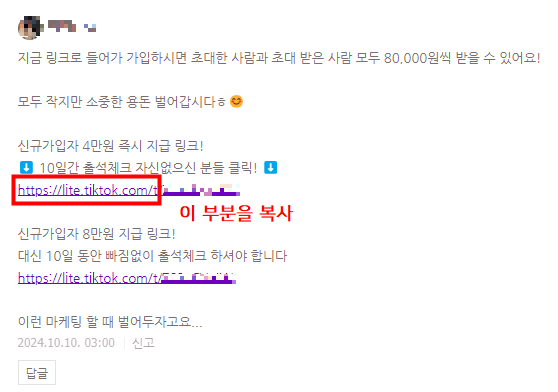 최근에 많이 달린 틱톡 라이트 광고 댓글을 예시로 설명해보겠습니다.