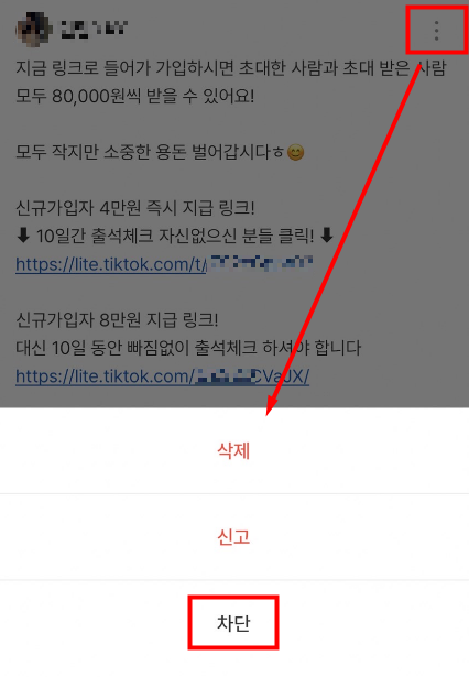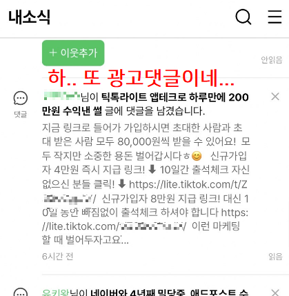 이걸 일일이 지우는거에 조금 지치기도 했는데 오늘은 이 지긋지긋한 틱톡라이트 광고 댓글을 실시간으로 자동 차단하는 방법을 소개해봅니다.