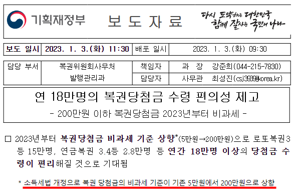 여기서 유념할 점 중 하나는 당첨금 200만원까지는 비과세가 적용된다는 것입니다.