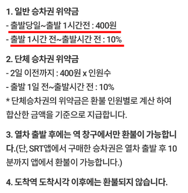 SRT 역시 승차권을 취소하고 환불을 받을 때 수수료가 발생할 수 있는데요.