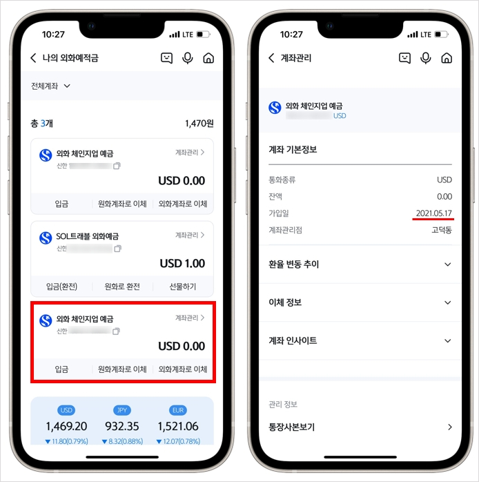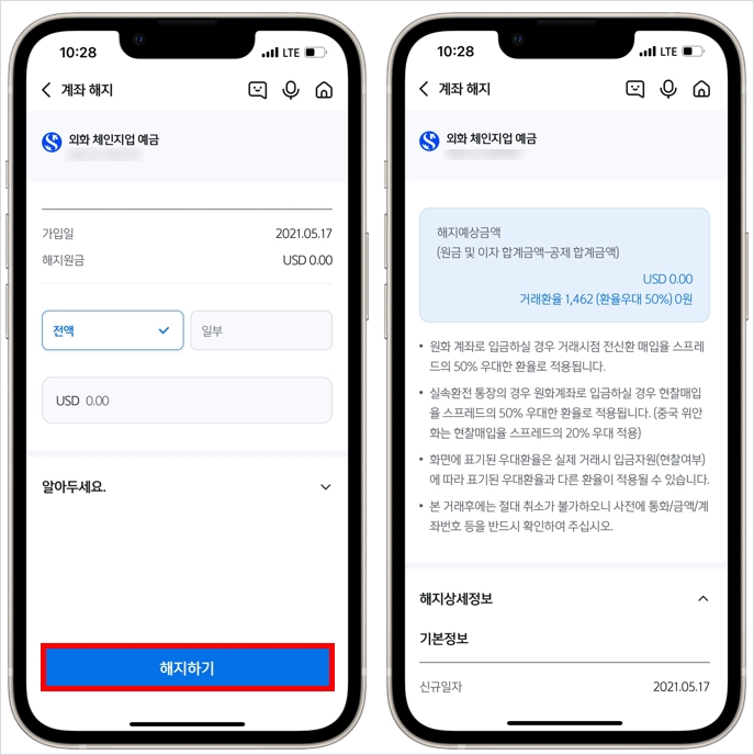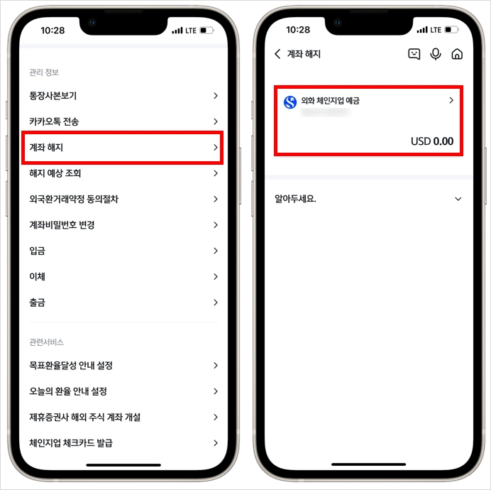 저는 외화 통장중 똑같은 상품이 두 개나 있어서 이 중 하나를 직접 해지해볼텐데요.