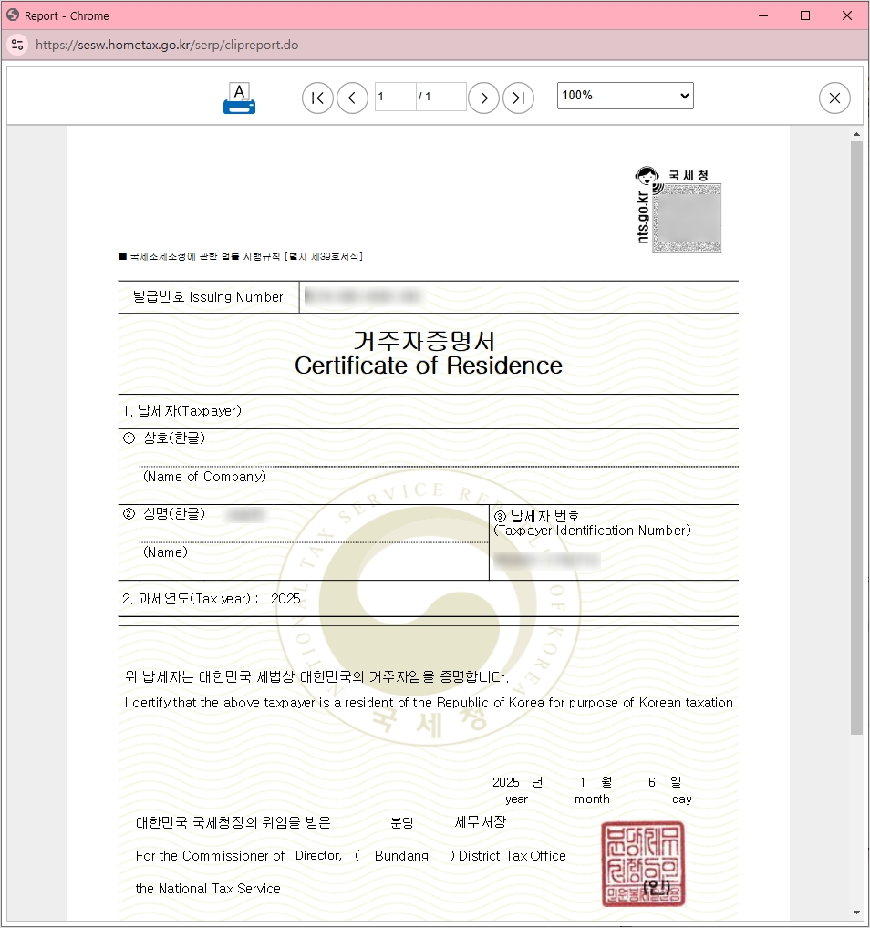 일단 납세자 거주지 증명서는 국세청 홈택스에서 온라인으로 쉽게 발급받고 출력할 수 있습니다.