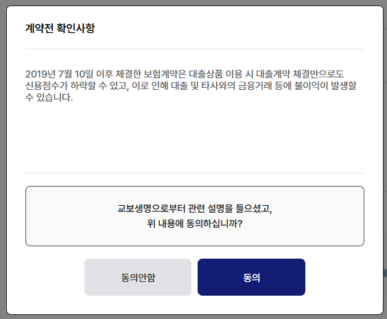 마지막으로 계약전 확인사항을 체크하고 [동의] 버튼을 클릭합니다.