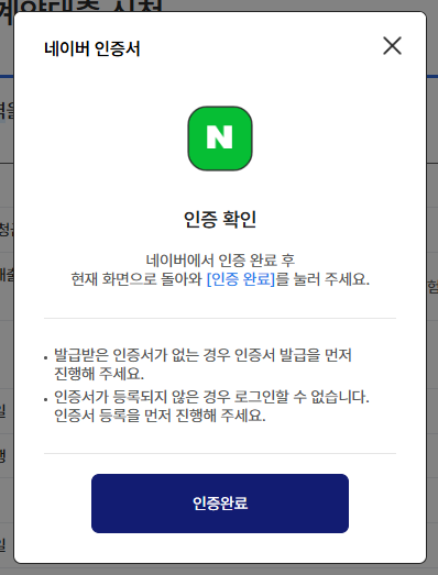 그 후 네이버 인증서를 비롯한 간편인증을 완료하면 끝납니다.