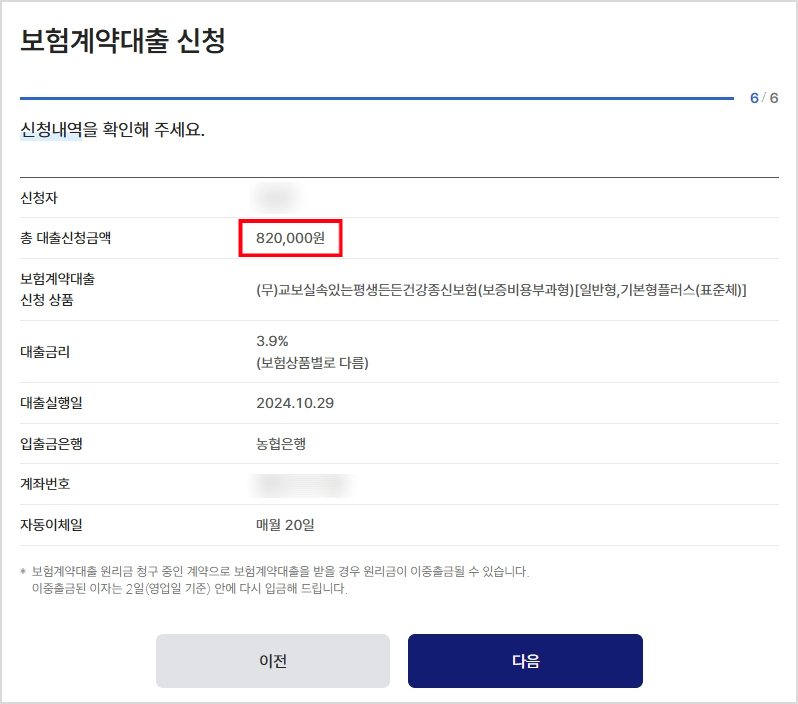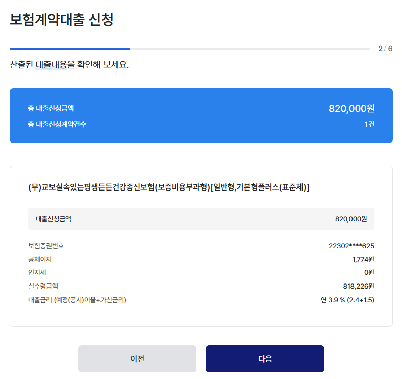 자 이제 내가 신청한 보험계약대출에 대한 내역을 확인해보구요.