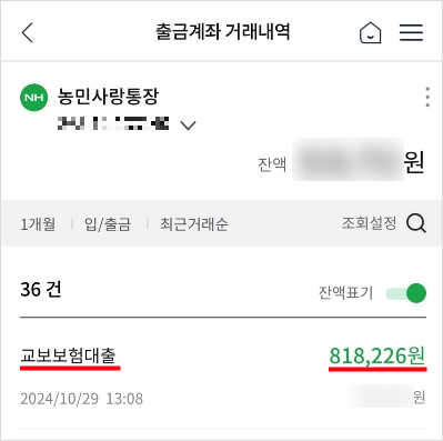 내 계좌를 확인해보니 아래와 같이 입금이 된걸 확인할 수 있습니다.