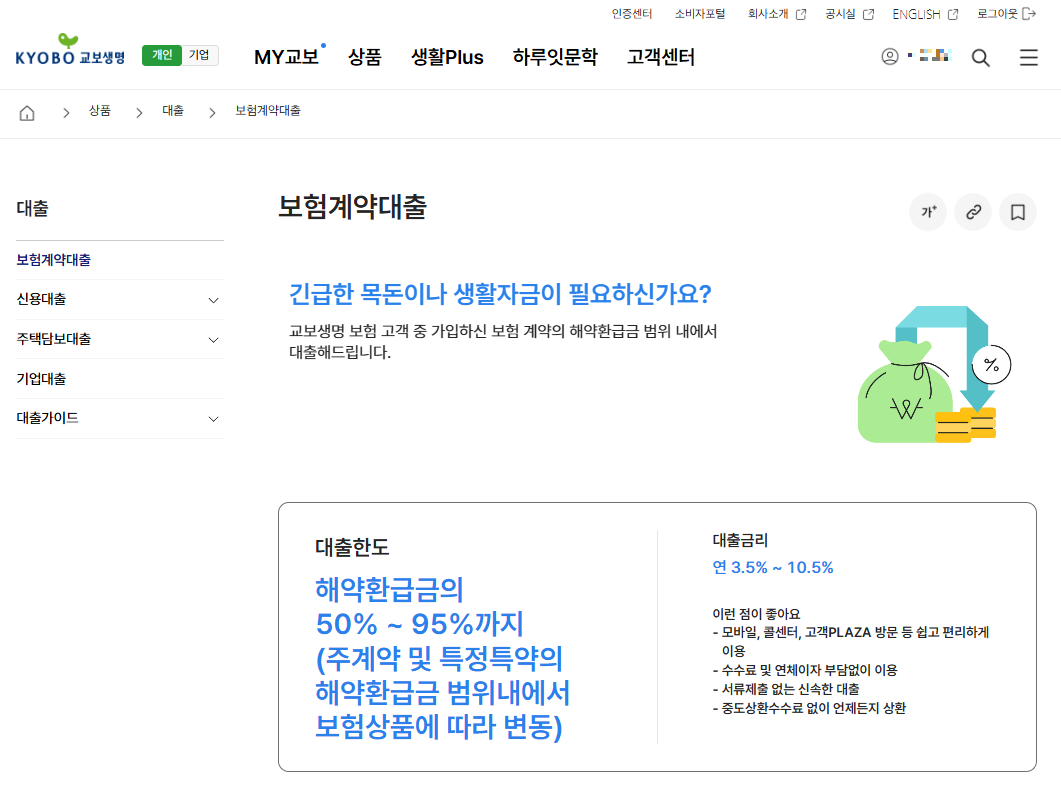 교보생명 보험 계약대출 신청 방법