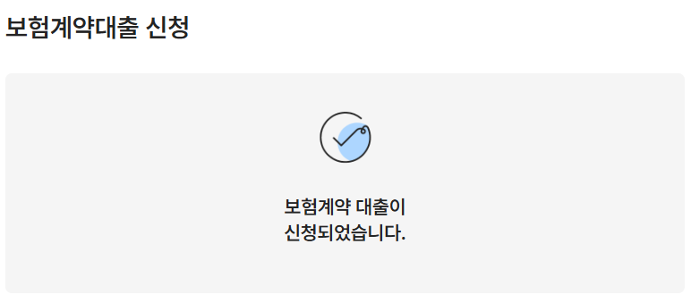 이제 보험계약대출 신청이 완료되었다는 메시지를 확인할 수 있습니다.