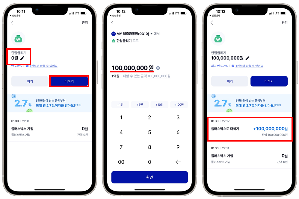 아래 화면처럼 1억원을 채워보니 '플러스박스로 더하기'로 1억원이 추가된 것을 확인할 수 있습니다.