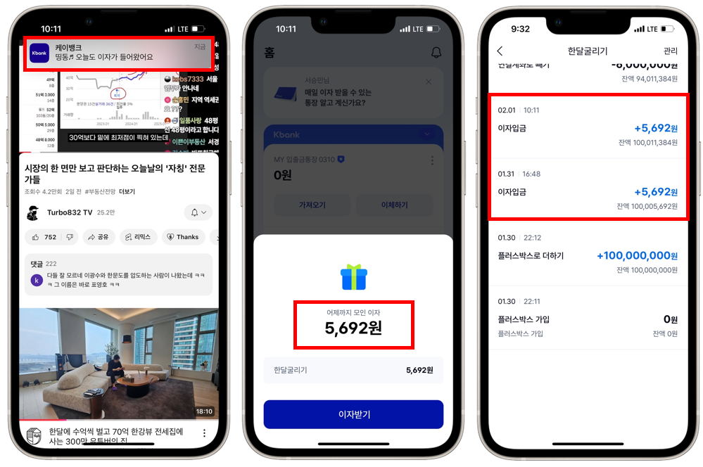저 같은 경우는 아침에 운동 하면서 유튜브를 보다가 갑자기 이자가 들어왔다는 알림을 받았습니다.