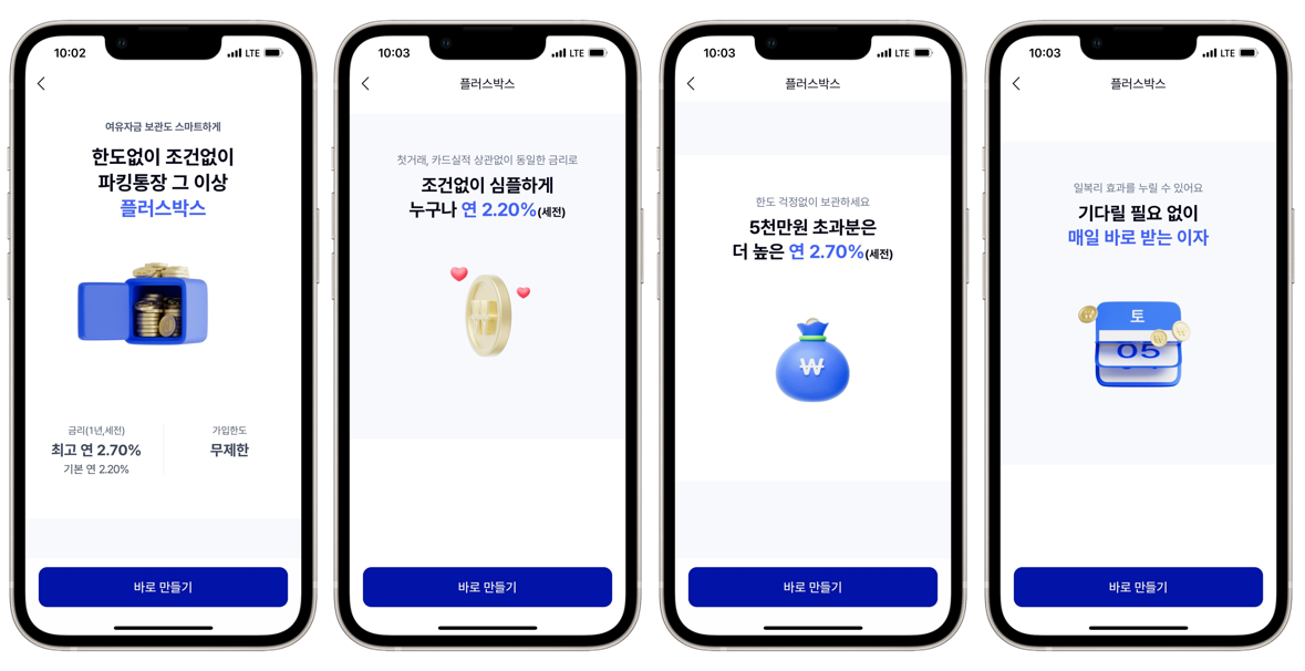 이걸 눌러주면 바로 파킹통장 용도의 플러스박스를 만들 수 있습니다.