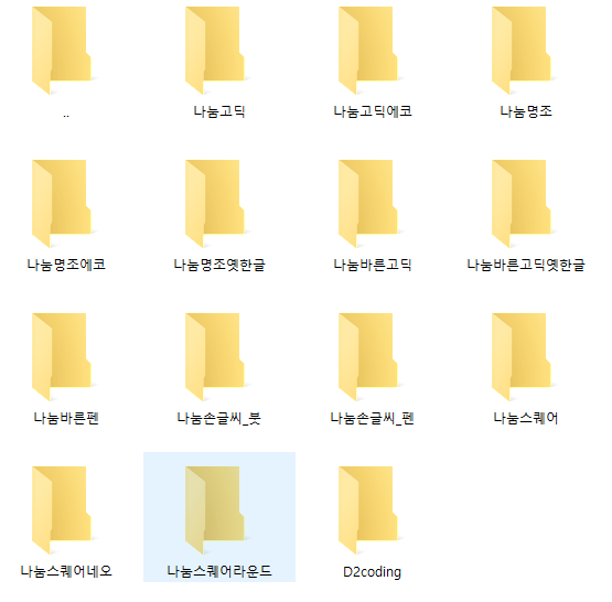 일단 여러가지 글씨체가 있지만 이 중 나눔고딕체를 예시로 설명해보겠습니다.