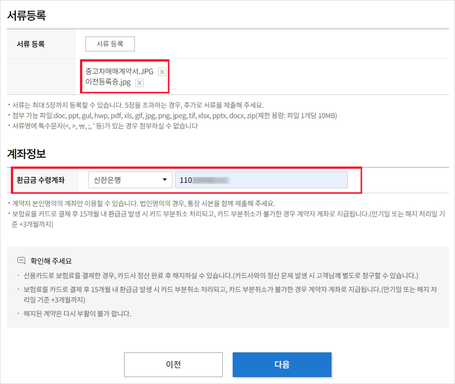 그 다음으로 보험료를 환급받을 계좌정보를 입력해줍니다.