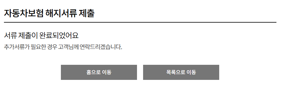 이로서 해지 신청이 끝이 났고 만일 추가서류가 필요하면 별도로 연락이 옵니다.