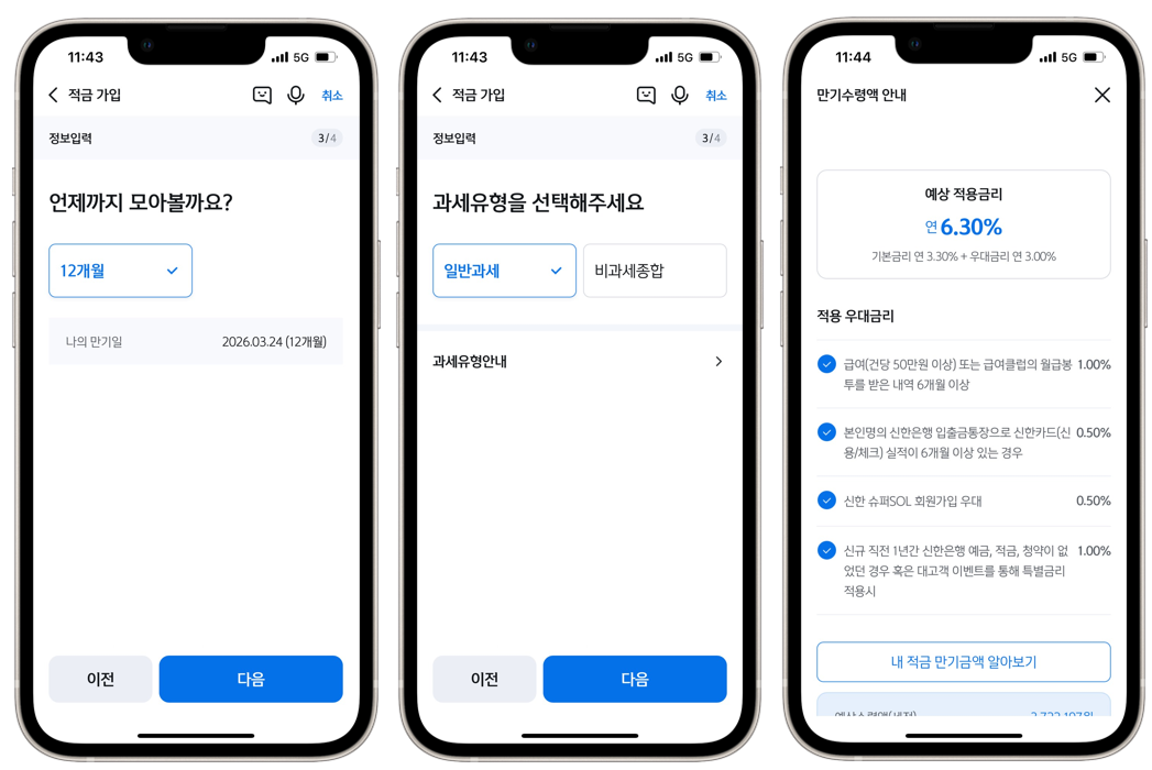 이걸 선택해서 적금 가입을 진행할 수 있습니다.