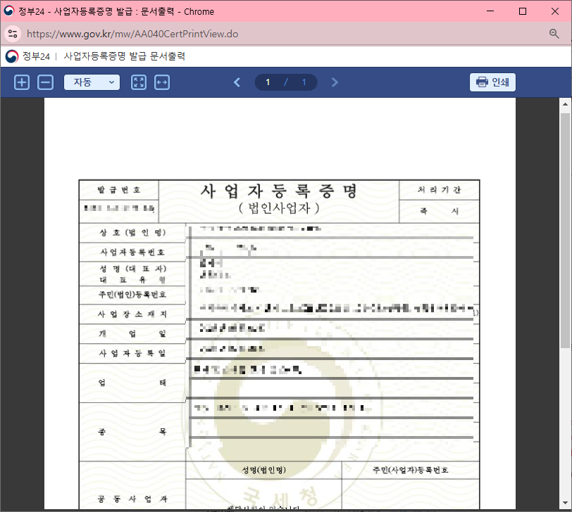 자, 이제 법인사업자에 대한 사업자등록증명 발급이 모두 끝났습니다.