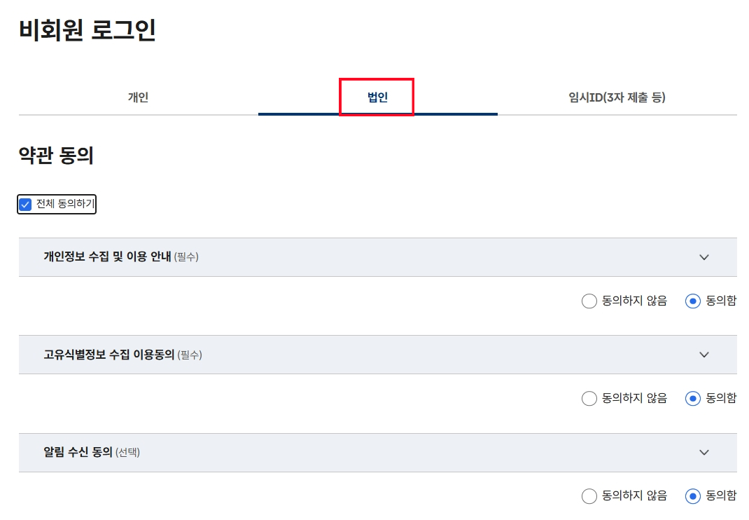 신청자인 법인의 정보가 올바르게 표기되어있는지 확인하고 진행을 해줍니다.